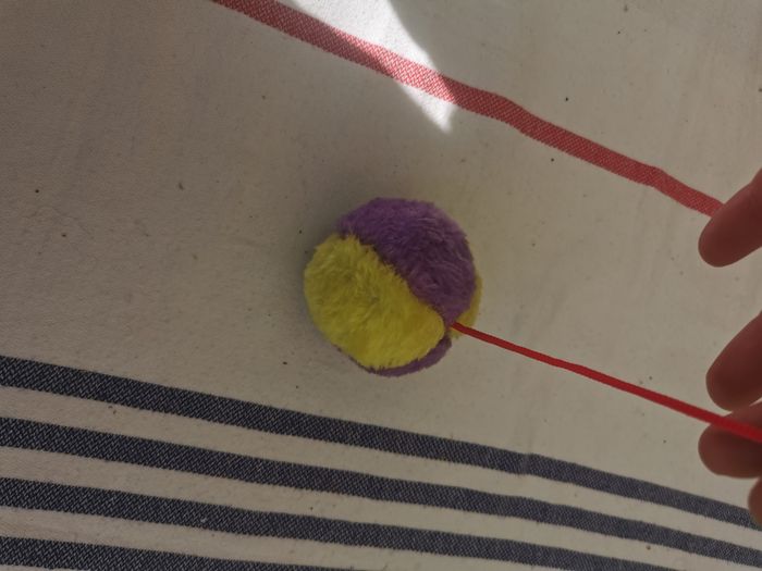 Balle grelot pour chat, en bon état général, taille 6 cm, poids 10g.