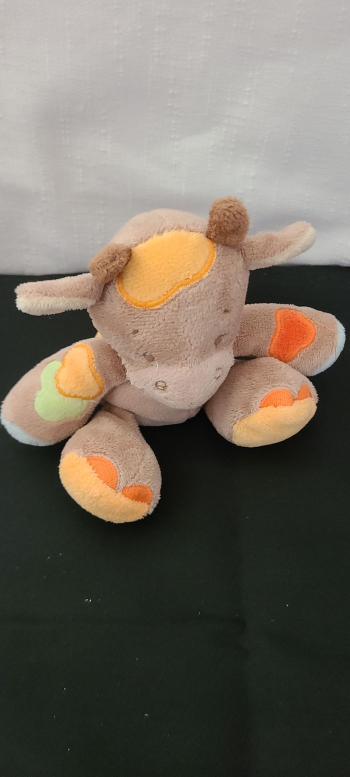 Doudou girafe vache marron bleu vert orange NATTOU