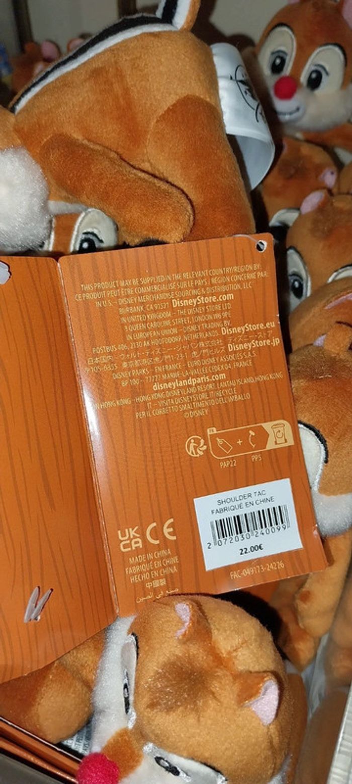 Pick-up pour la peluche neuve de Tac en version shoulder Neuve avec étiquettes de prix d'origine Venant de Disneyland Paris
