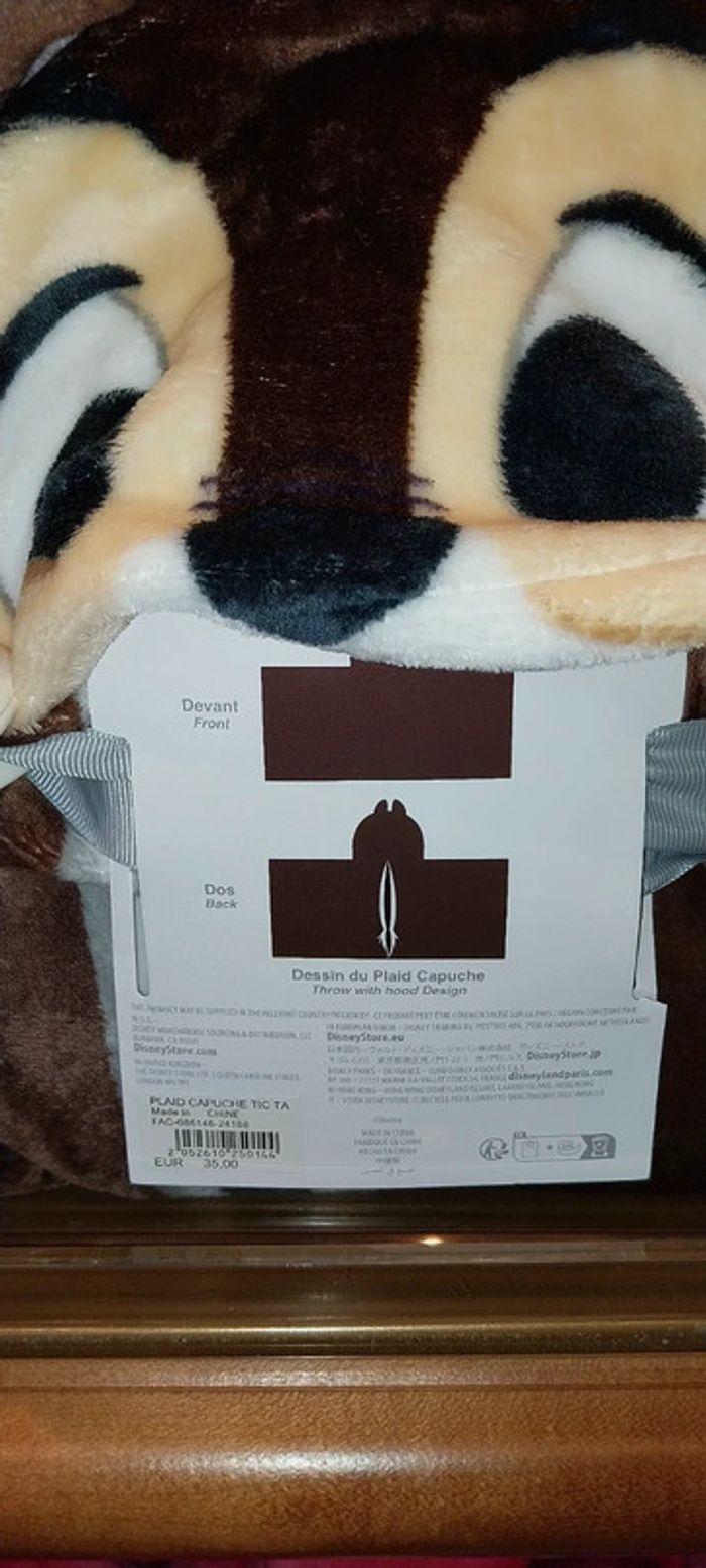 Pick-up pour le plaid capuche sur le thème de Tic Neuve avec étiquette de prix d'origine Venant de Disneyland Paris Taille unique
