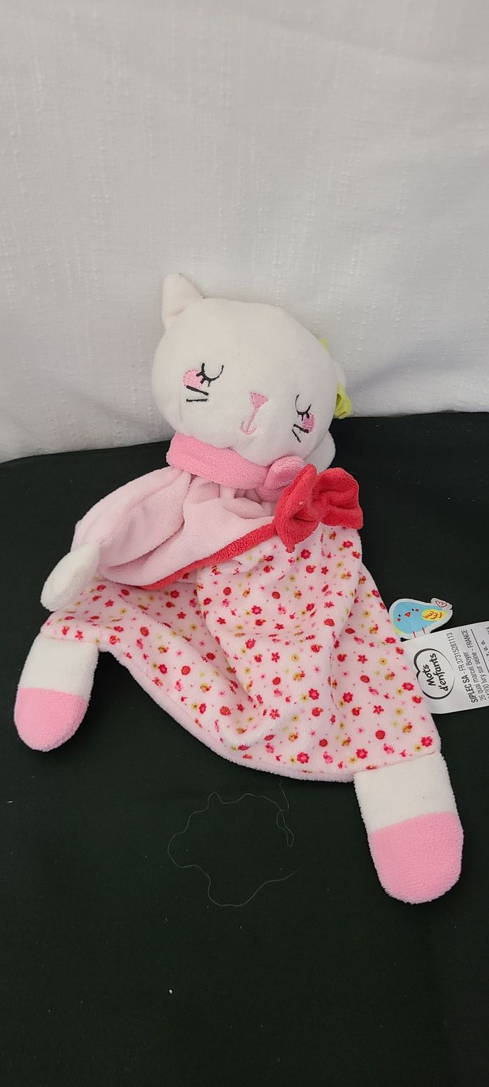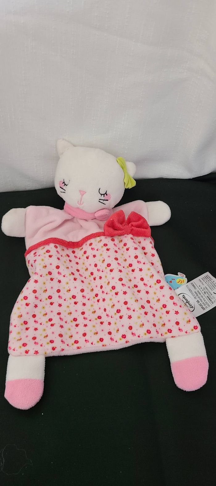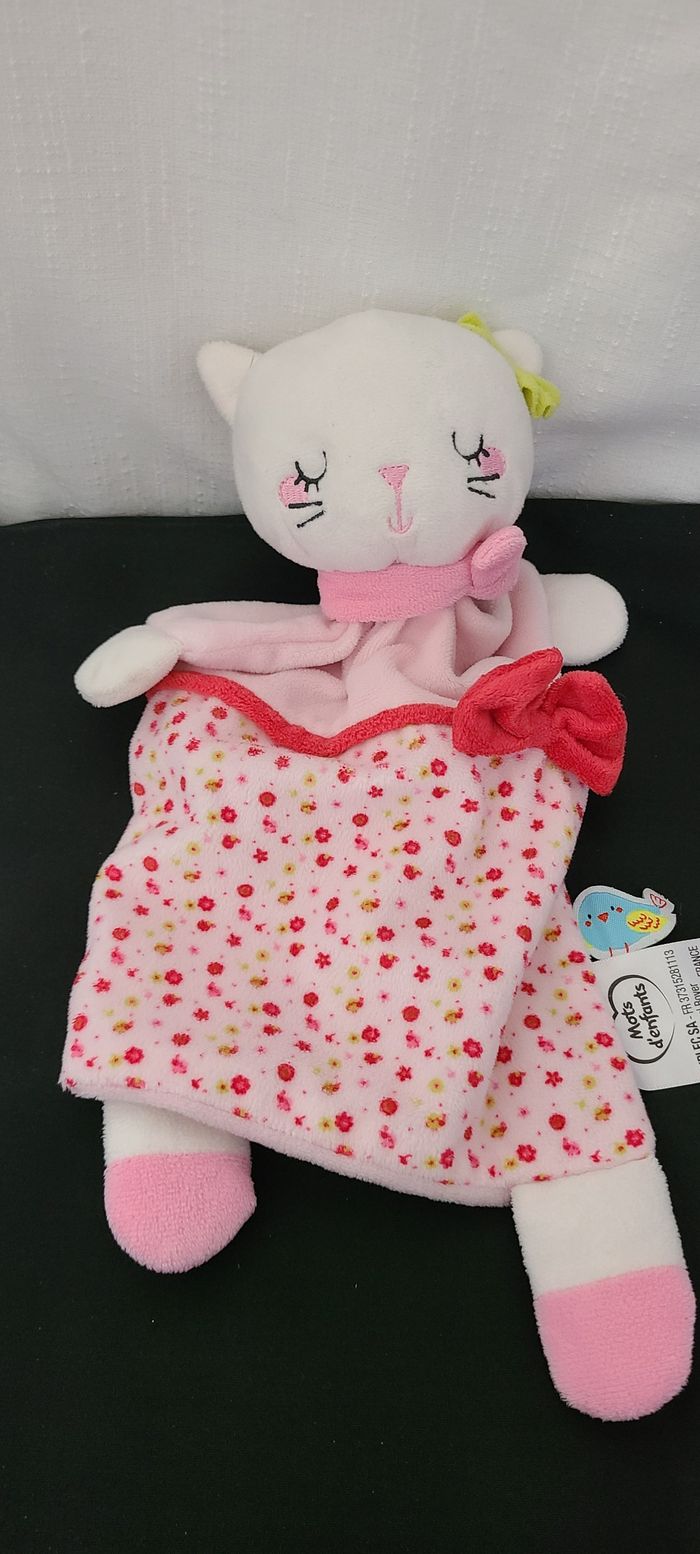 Doudou plat chat rose noeud oiseau Mots d'Enfants - photo numéro 1