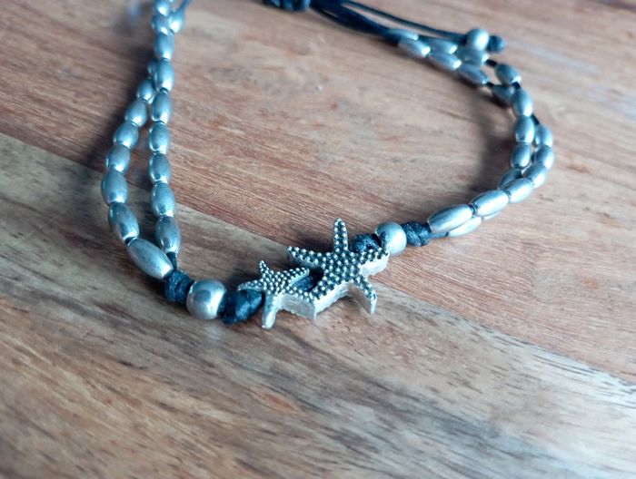 Bracelet de cheville lien noir et métal argenté - photo numéro 2