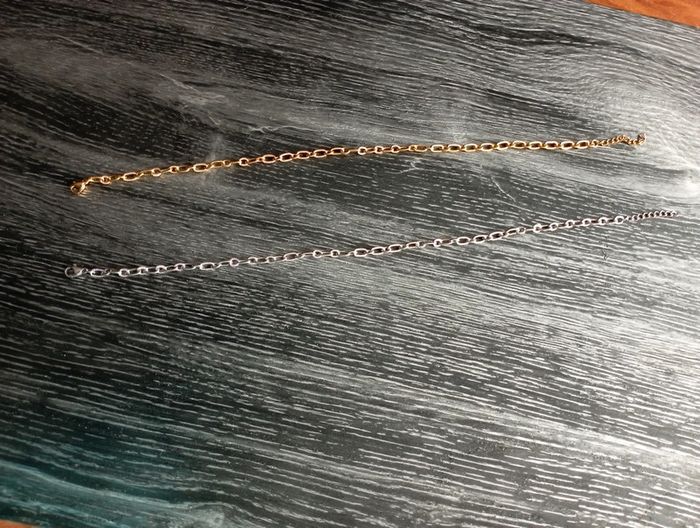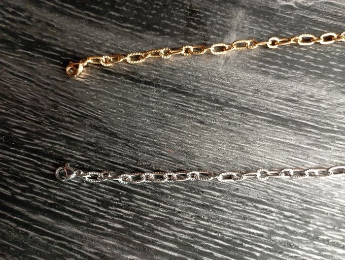 Lot de 2 Bracelets de cheville acier doré et argenté, longueur 30 cm, peuvent être vendus séparément pour 3 € l'un