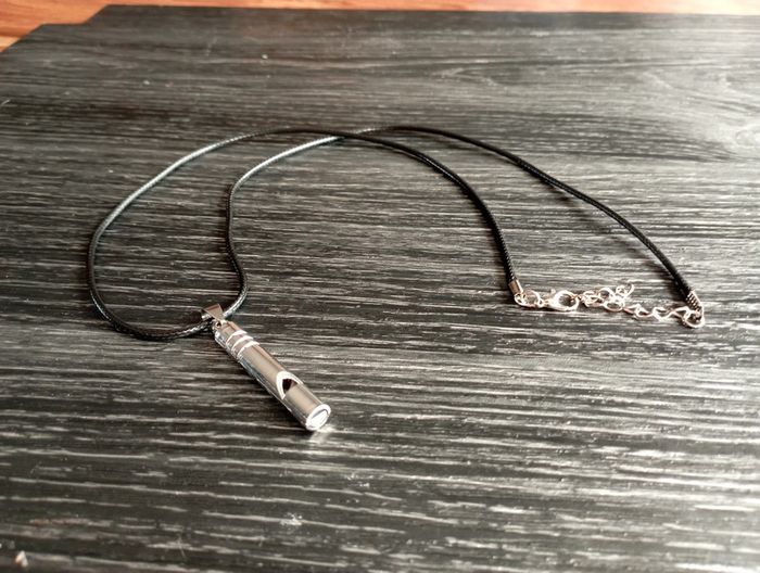 Sifflet d'urgence avec cordon simili cuir noir - photo numéro 5