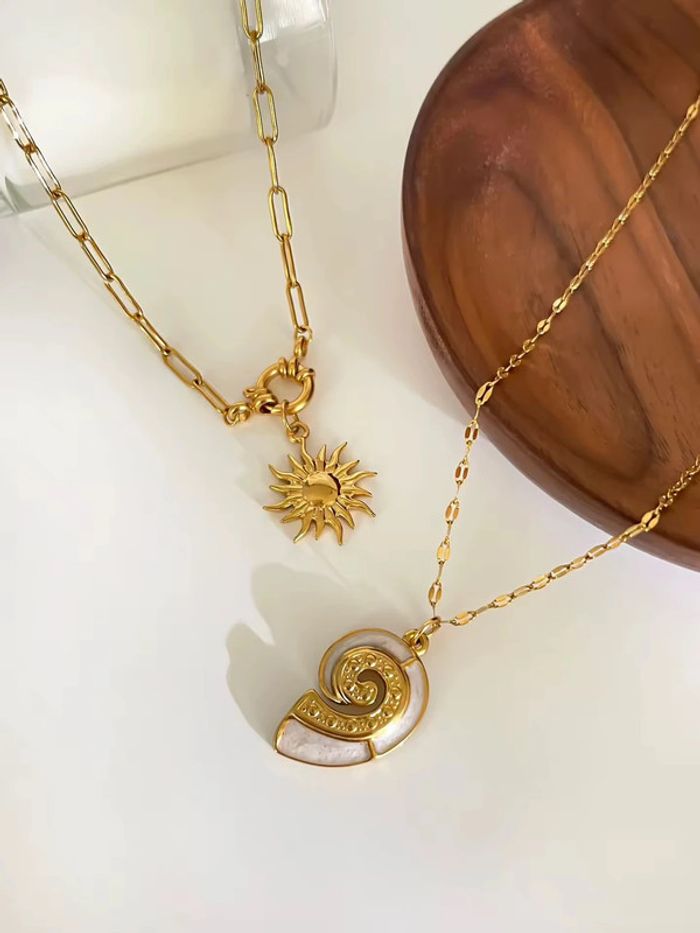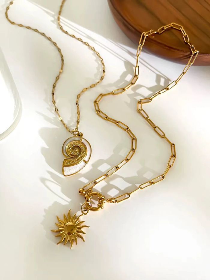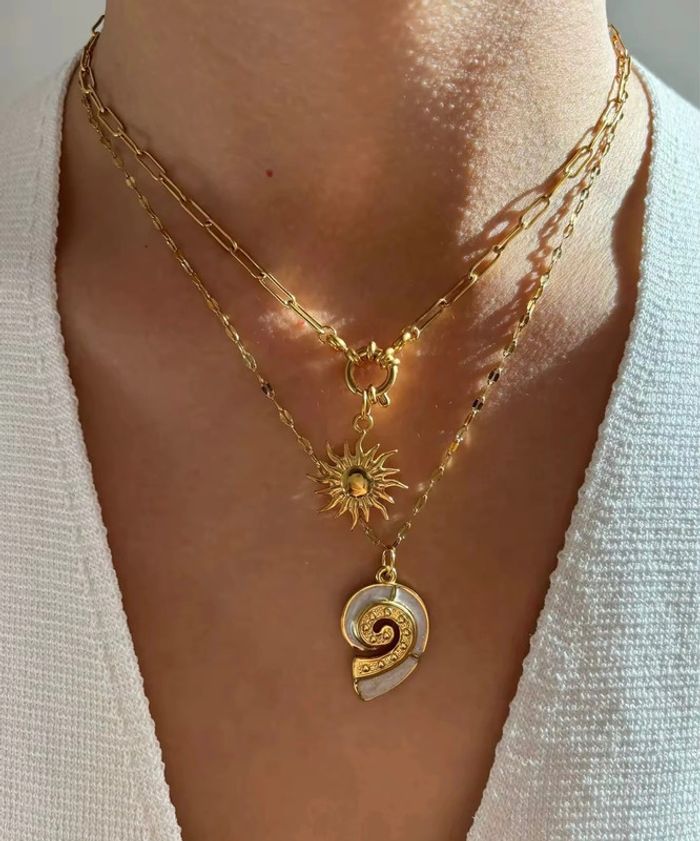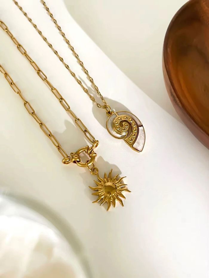 Duo de colliers dorés “Soleil & Coquillage” Acier inoxydable, vendus ensemble - photo numéro 1
