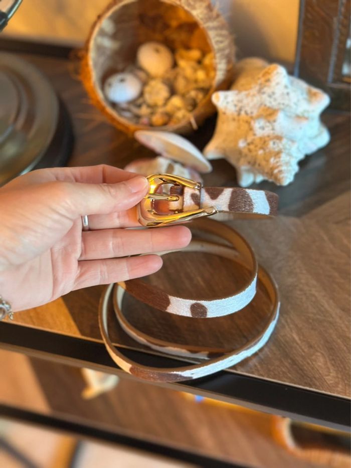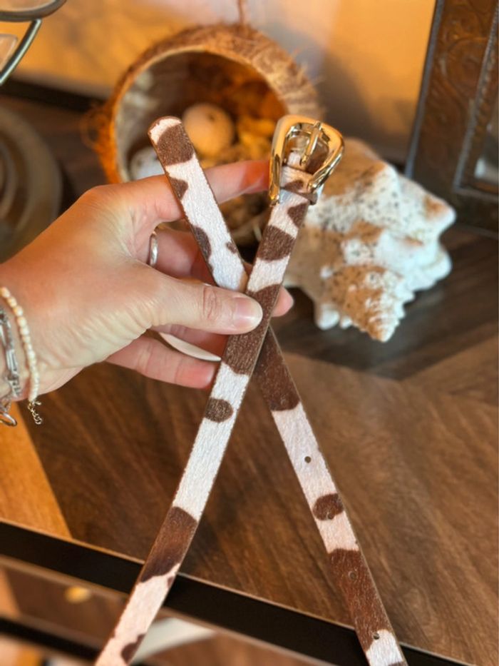 Ceinture effet peau de vache – suédine douce, boucle dorée - photo numéro 4