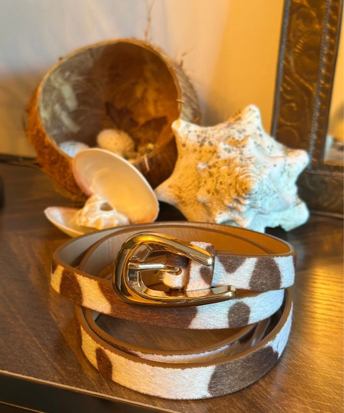 Ceinture effet peau de vache – suédine douce, boucle dorée