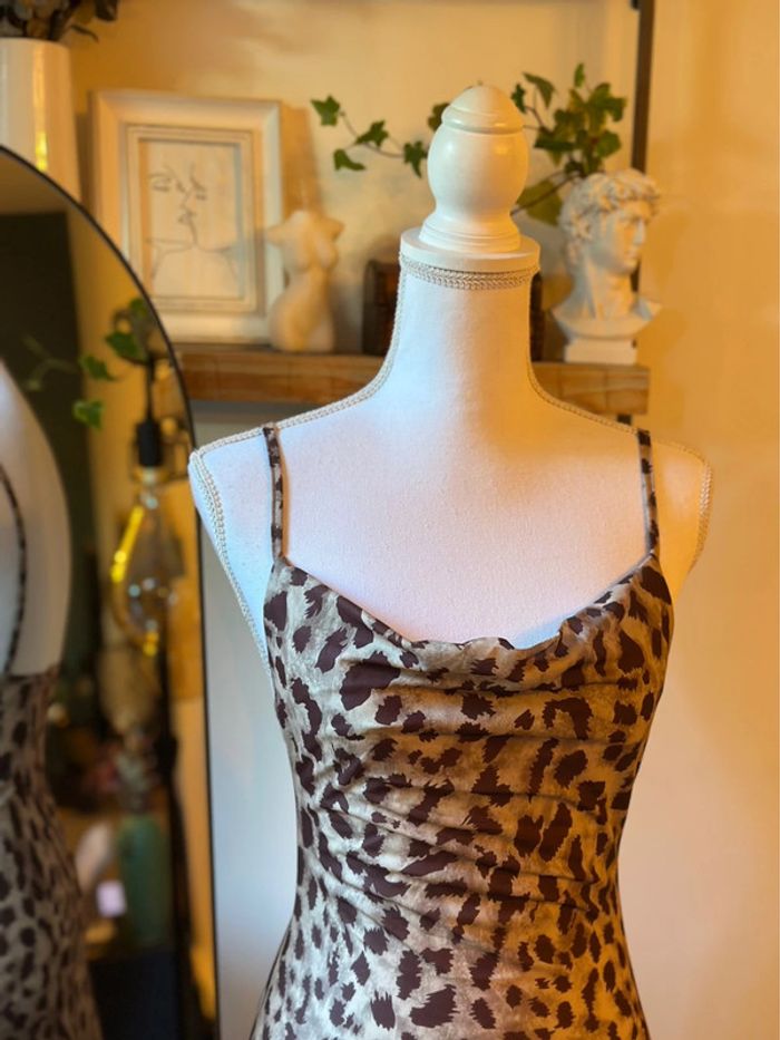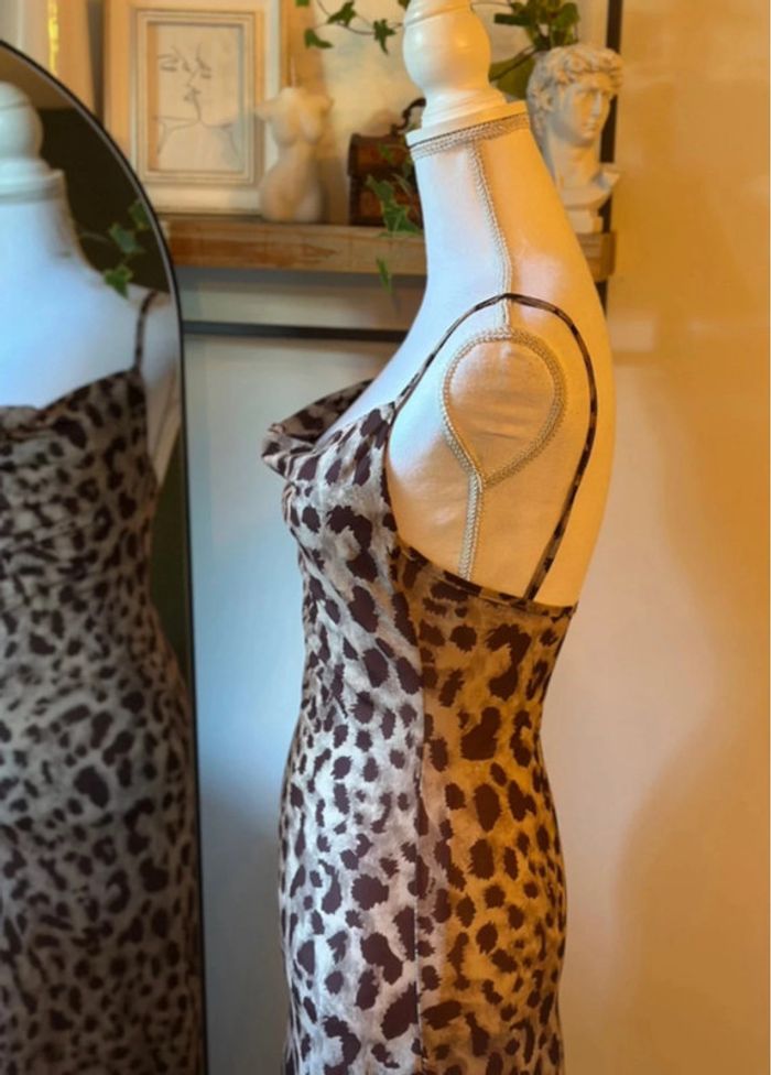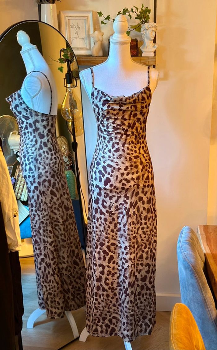 Sublime robe longue imprimé léopard, neuve, jamais portée. Matière fluide et légère, parfaite pour l’été 🌞. Coupe flatteuse avec joli décolleté drapé, fines bretelles réglables, et dos dégagé très féminin. Convient à une taille 36. Style chic & sauvage, à porter avec des sandales plates ou des talons pour un look estival élégant ou de soirée. 📏 Taille : 36 📦 État : Neuf