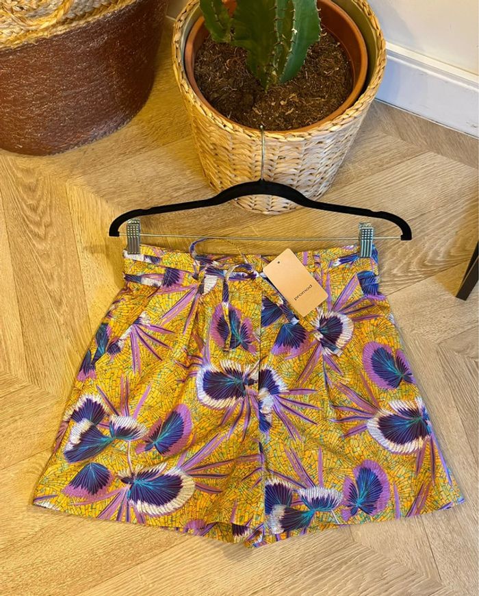 Short imprimé orangé lilas Promod taille 36 Neuf - photo numéro 1