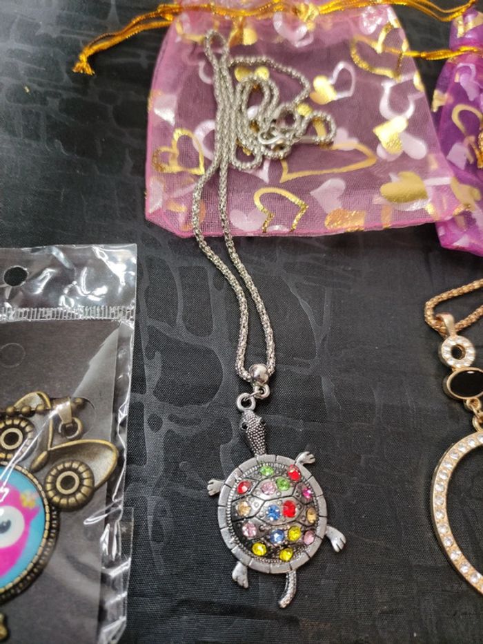 Lot de 8 colliers / sautoirs divers. Avec thème chouette, perroquet, tortue, papillon, rose en nacre... N'ayant jamais été utilisés. Ce lot peut-être pour vous faire plaisir ou spécial revendeur. Vendu tel que sur mes photos. Envoi rapide et soigné.