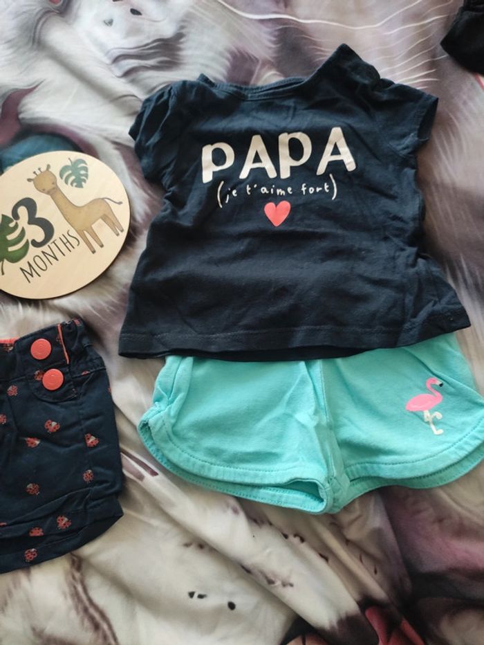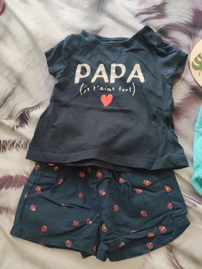 Ensemble d'été créé par mes soins, qui se compose d'un t-shirt ( papa je t'aime) et de 2 shorts . De différentes marques. Taille 3 mois. 🐞Pour retrouver mes vêtements de même taille cliquez ici: #LylooLys76_taille3mois_bébé. Pensez à rassembler vos achats pour minimiser les frais de port. 😉 En vente tel que sur mes photos. 📦Envoi rapide et soigné.