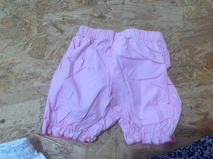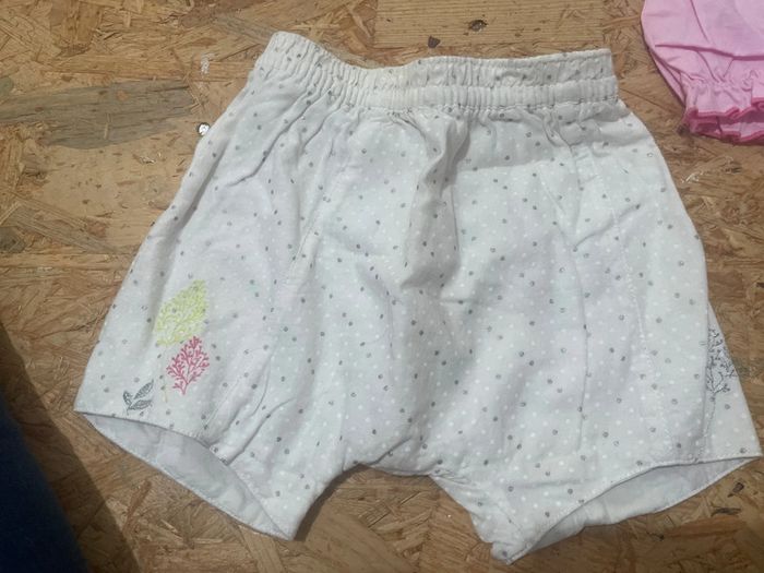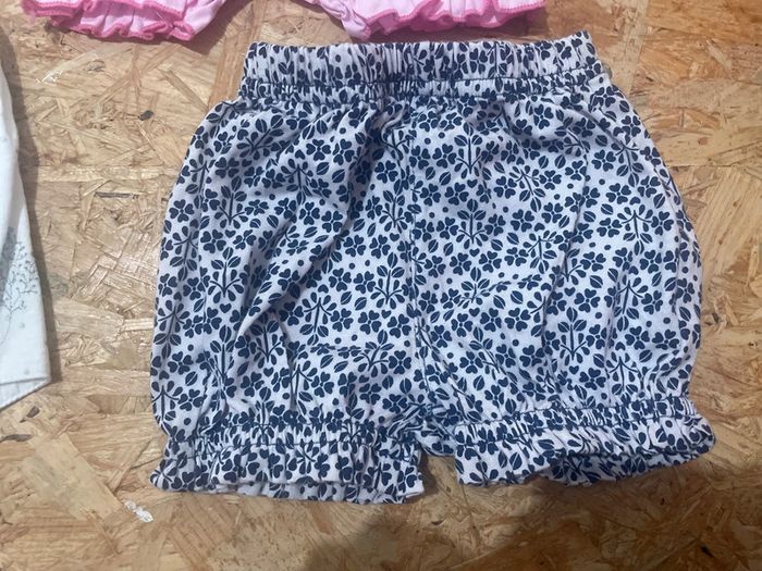 Lot de 3 short fille 6 mois en parfait état. - un blanc orchestra bébé. - un rose sans marque. - un blanc avec des trèfles bleues sans marque. #lotshort6mois #celine102612fille6mois #shortorchestra6mois