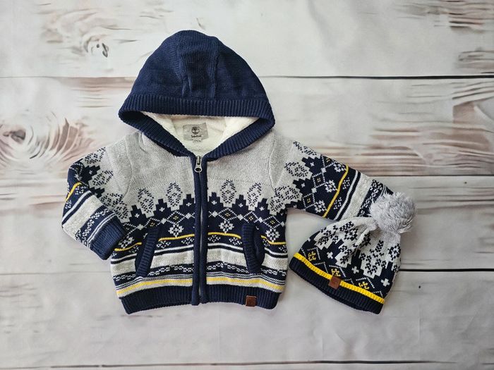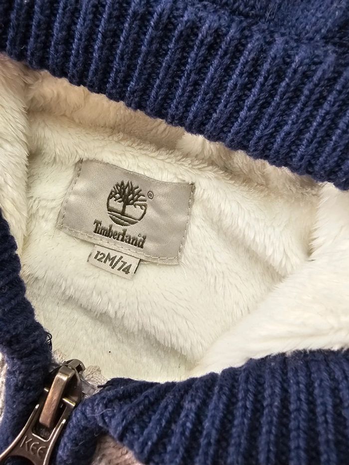 Ensemble gilet + bonnet TIMBERLAND Taille 12 mois Couleurs gris / bleu marine État : fidèle aux photos 🚭 maison non fumeur