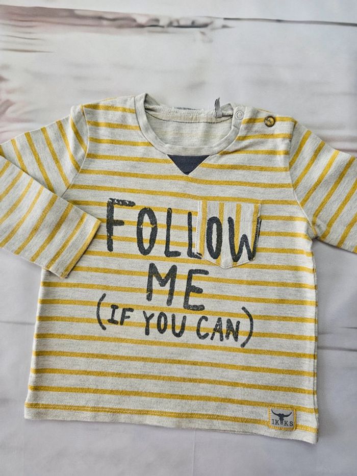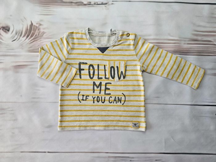 Tee-shirt IKKS Taille 12 mois Couleurs moutarde / beige chiné État : fidèle aux photos 🚭 maison non fumeur