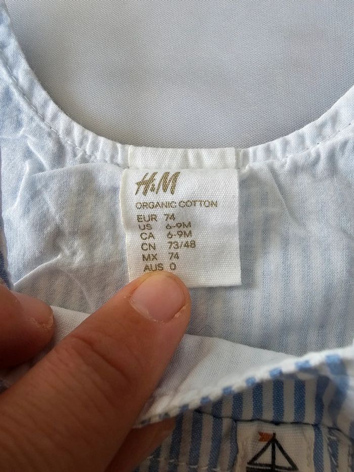 Salopette H&M Taille 6/9 mois Couleurs bleu clair / blanc État : fidèle aux photos 🚭 maison non fumeur