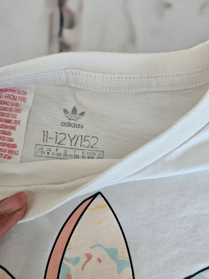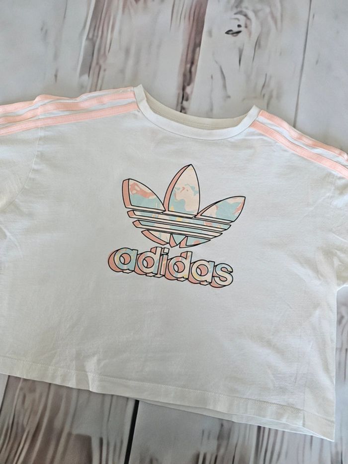 Tee-shirt / crop top ADIDAS Taille 11/12 ans Couleurs blanc/ corail État : fidèle aux photos 🚭 maison non fumeur