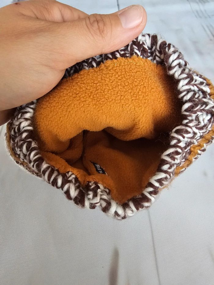 Bonnet KIABI Taille 3/6 mois Couleurs moutarde / marron / beige État : fidèle aux photos 🚭 maison non fumeur