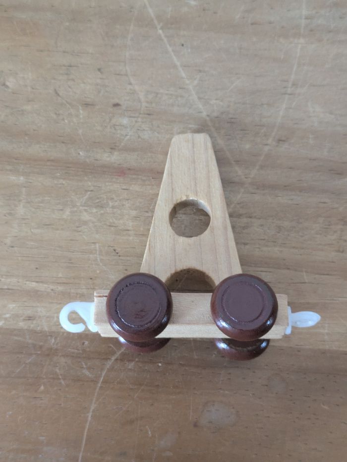 Bonjour, Je vends cette lettre A bois pour petit train prénom légèrement abimé.