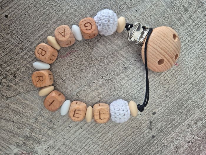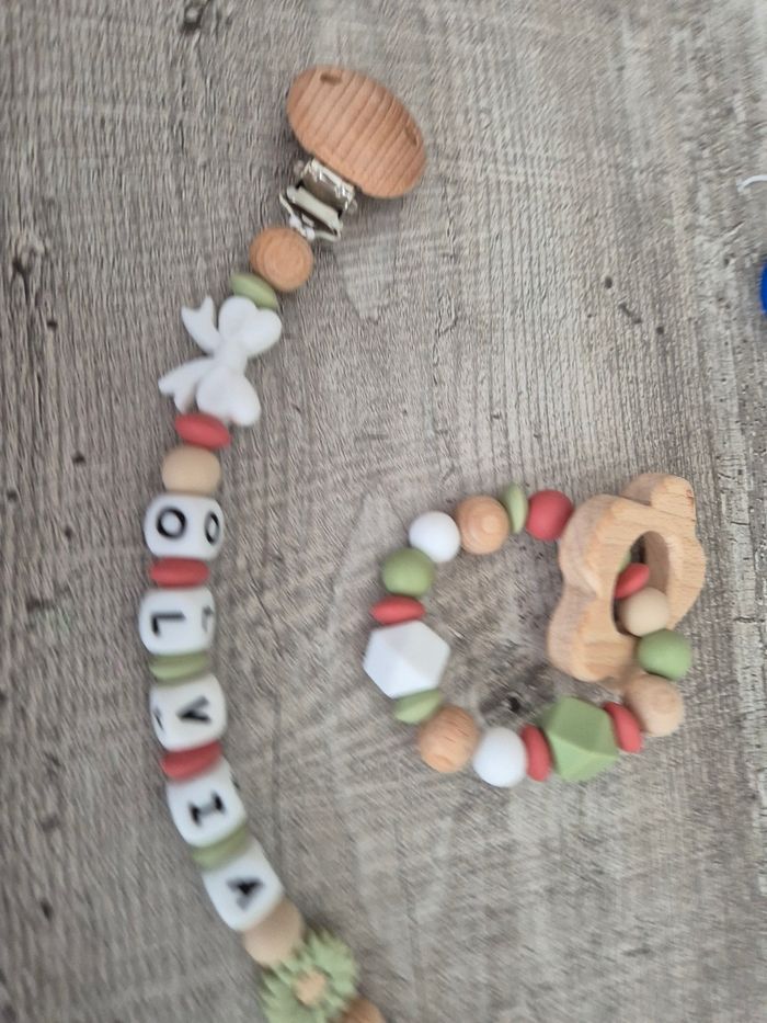 Bonjour, Je vous propose la création d'attache tétine, d'anneau de dentition et porte clé en silicone ou en bois. En silicone alimentaire sans danger pour vos enfants. Je crée également des doudous,hochet lingettes réutilisables. N'hésitez pas à me contacter pour tout renseignements et voir mes motifs disponibles Création et Envoie rapide