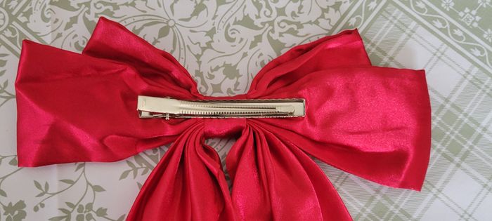 BARETTE CHEVEUX NOEUD SATIN ROUGE ! NEUF !