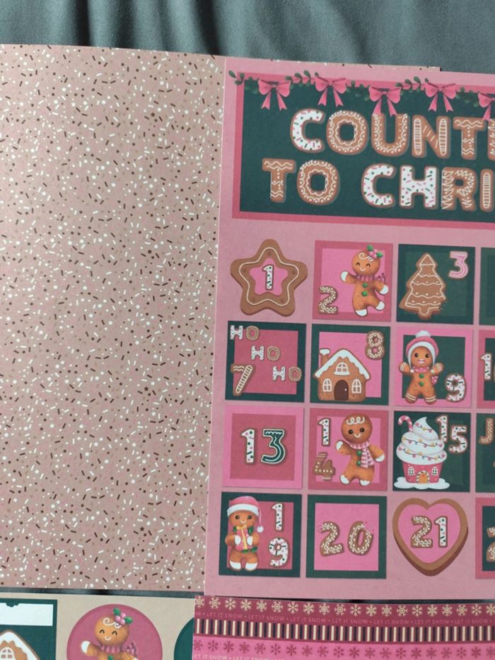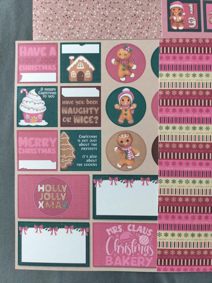 Lot de 6 feuilles scrapbooking Noël gourmand rose