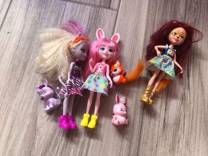 Lot de 3 poupées avec leurs animaux attitrés. Marque Enchantimals