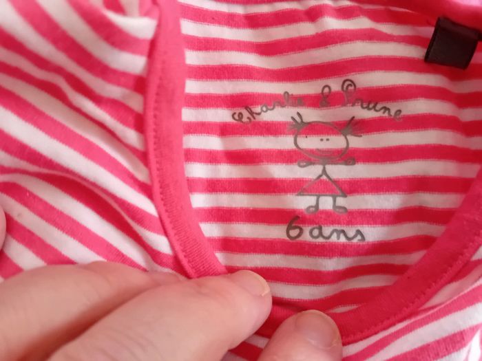 je vend Un tee shirt MC rayé rouge et blanc De marque Charlie et Prune Taille 6 ans En parfait état 4euros
