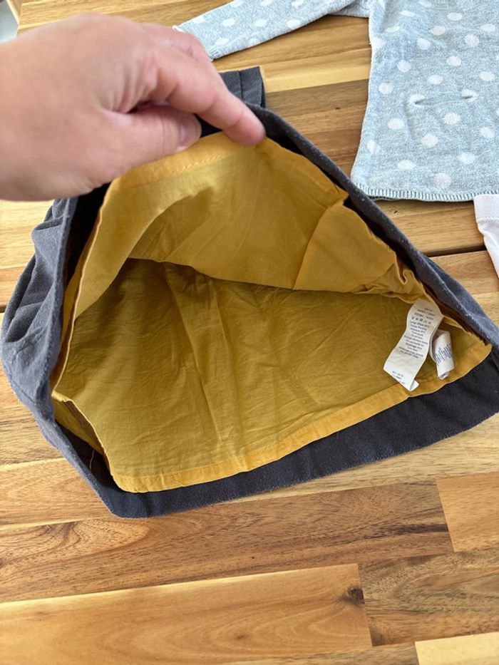 Une robe grise foncée doublée jaune moutarde Une robe grise à pois blancs Un legging rose très clair #marieclaire2712mois 🤑remises activées sur les lots 🚭maison non fumeur et sans animaux