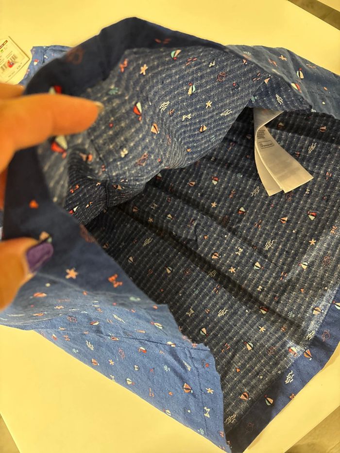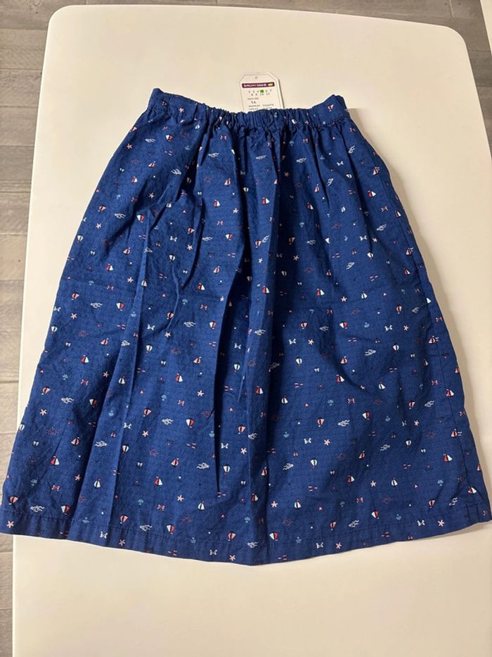 Jupe légère non doublée Bleue avec imprimé bateaux Ceinture élastique réglable #marieclaire275ans 🤑remises activées sur les lots 🚭maison non fumeur et sans animaux