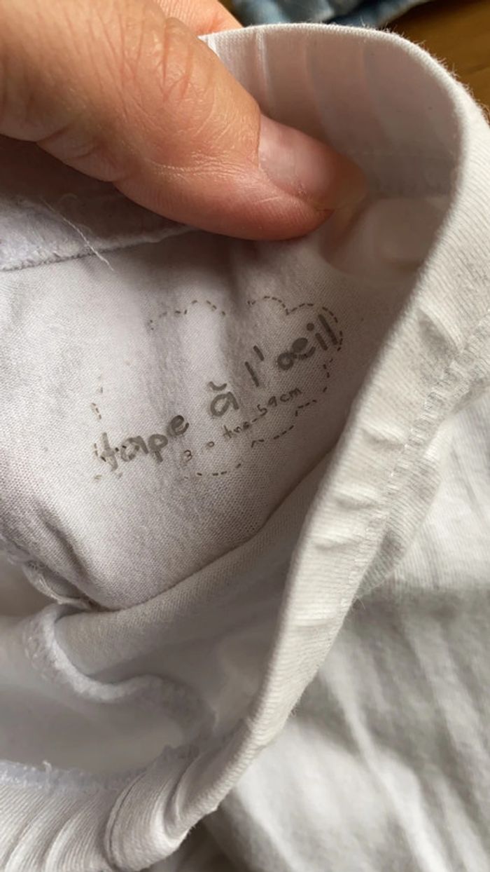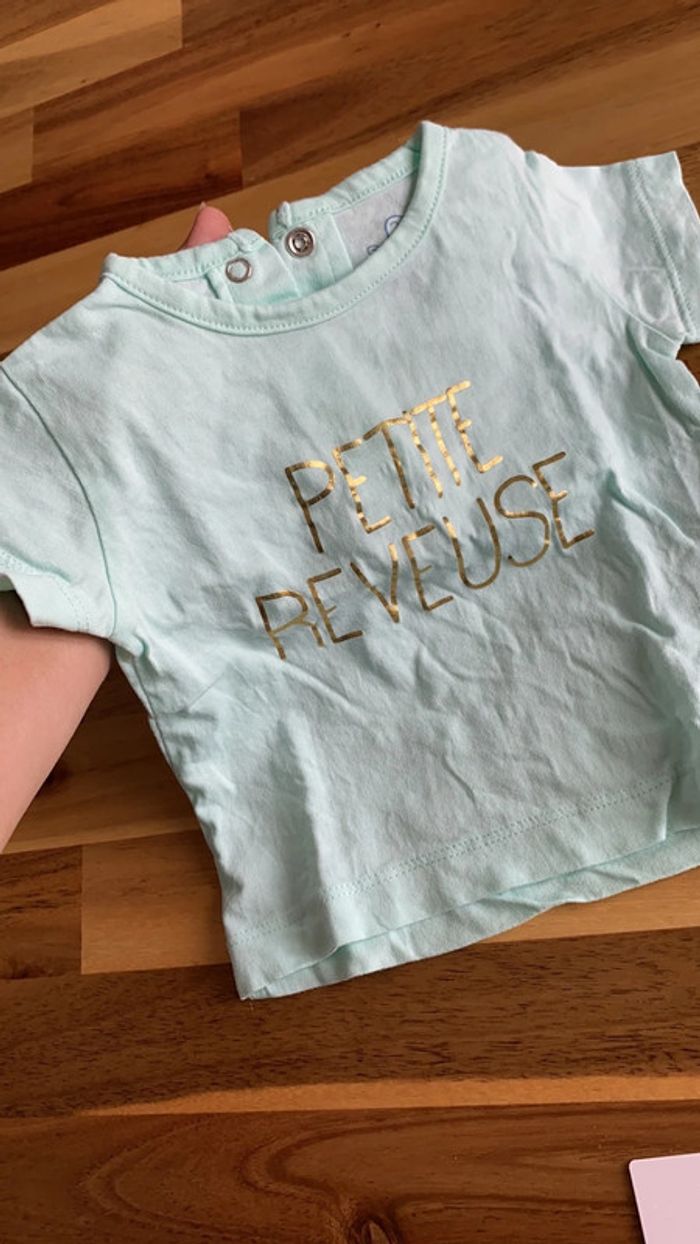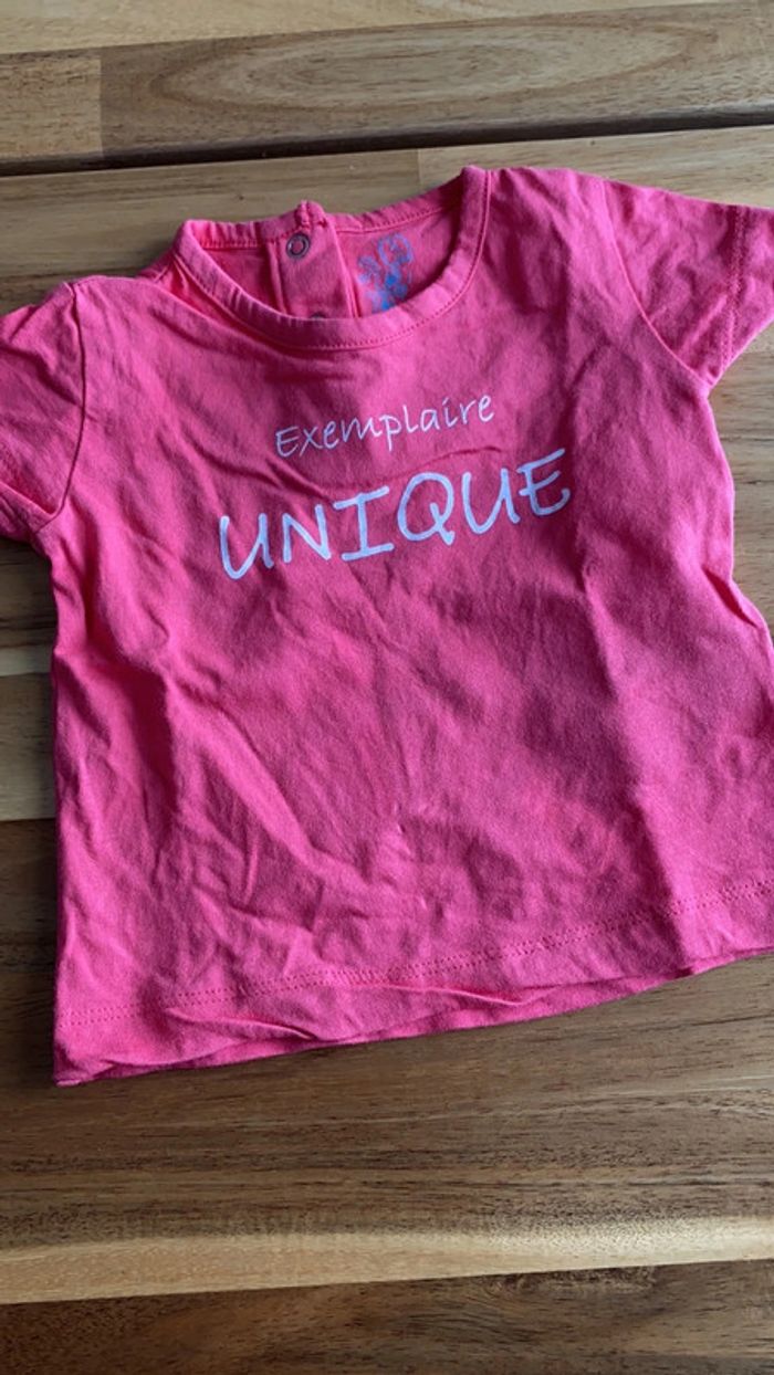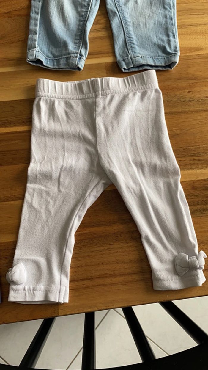 2 tshirts manches courtes l’un bleu turquoise et l’autre framboise 1 jean bleu clair 3 leggings un bleu un blanc et un corail #marieclaire273mois 🚭maison non fumeur et sans animaux 🤑remises activées sur les lots