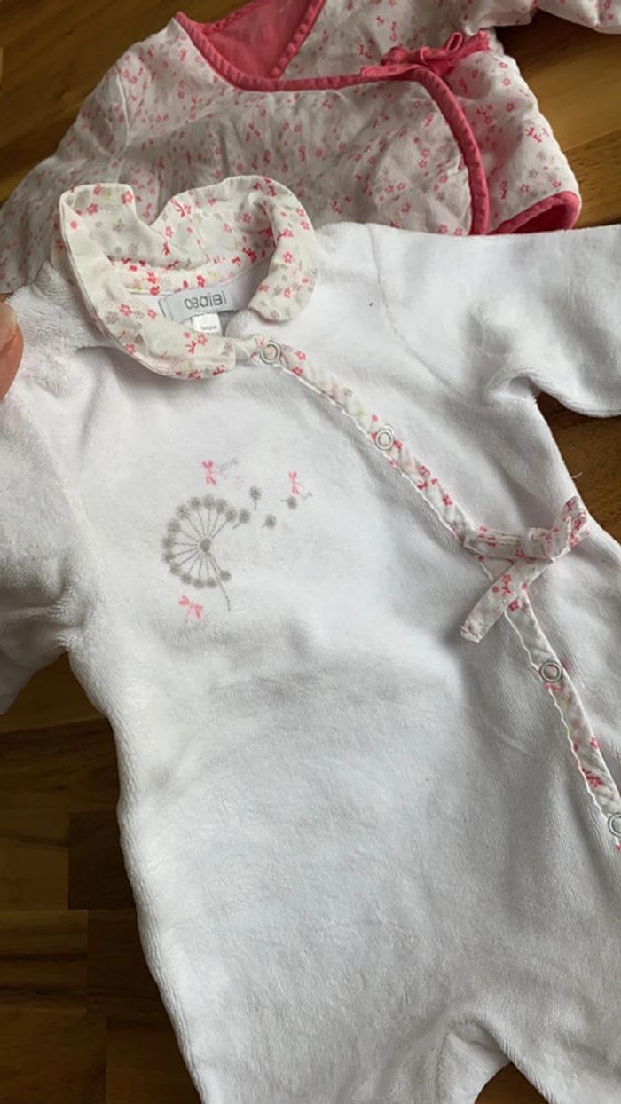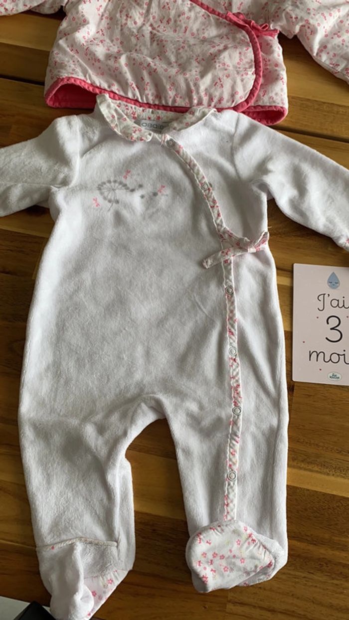Un body manches longues ouverture devant Un pyjama en velours ouverture devant Une veste cache coeur #trousseaunaissance #marieclaire273mois 🚭maison non fumeur et sans animaux 🤑remises activées sur les lots