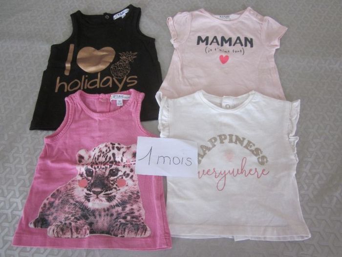 1m, 4 hauts sans manche/mc, kiabi, kitchoun