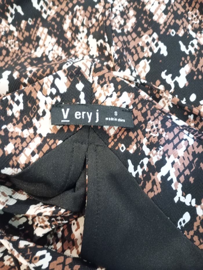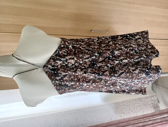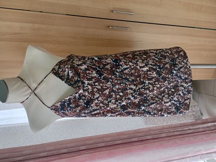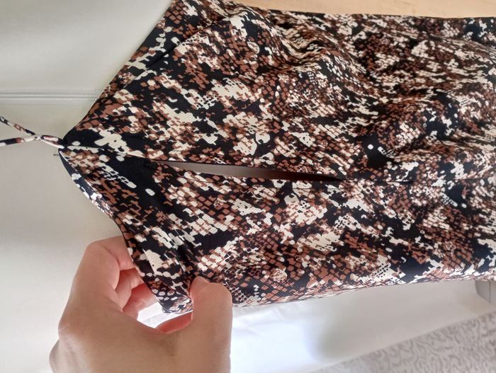 Robe légère avec doublure. Peut être nouée de différentes façons. Avec petit ouverture en haut du dos. 100% Polyester. Neuve sans étiquette. Longueur : 84 cm. Largeur entre aisselles : 46 cm. Taille : S. Marque : VeryJ.