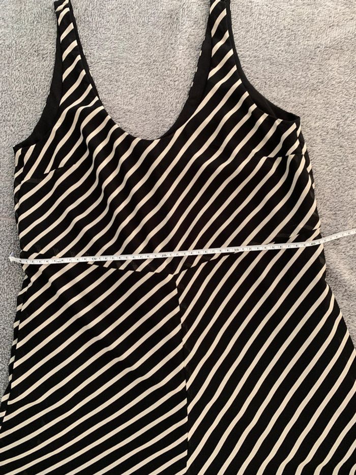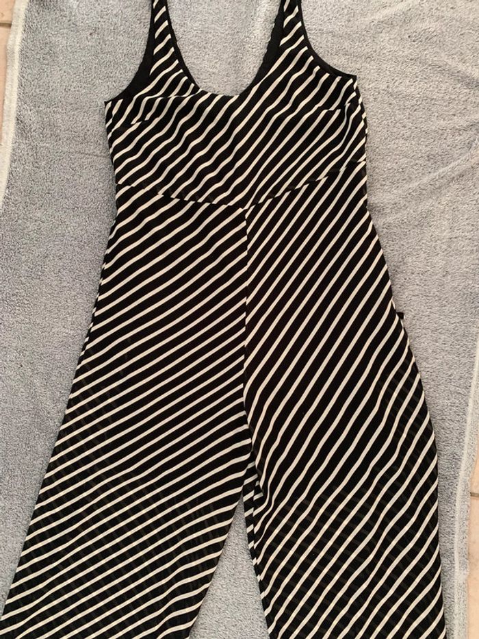 En très bon état Matière fluide polyester avec doublure Rayures noires et blanches H&M taille 36 Avec petite ceinture Longueur totale environ 130 cm avec les bretelles