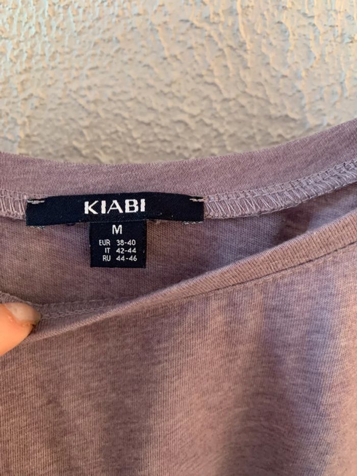 T shirt en coton mauve en très bon état avec laçage dans le Dos par 2 rubans mauves/ violet Taille M Marque Kiabi Environ 55 cm de long Aisselle à aisselle environ 50 cm Étiquette de lavage coupée