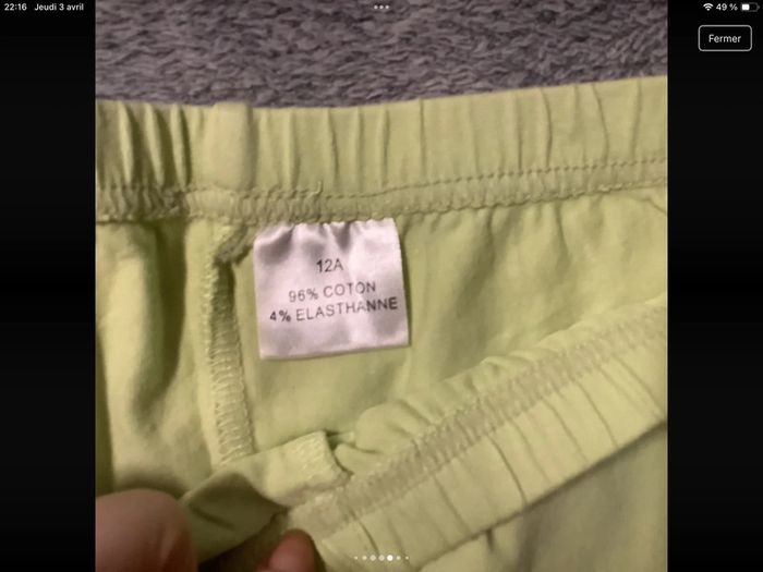 Pantacourt vert taille 12 ana