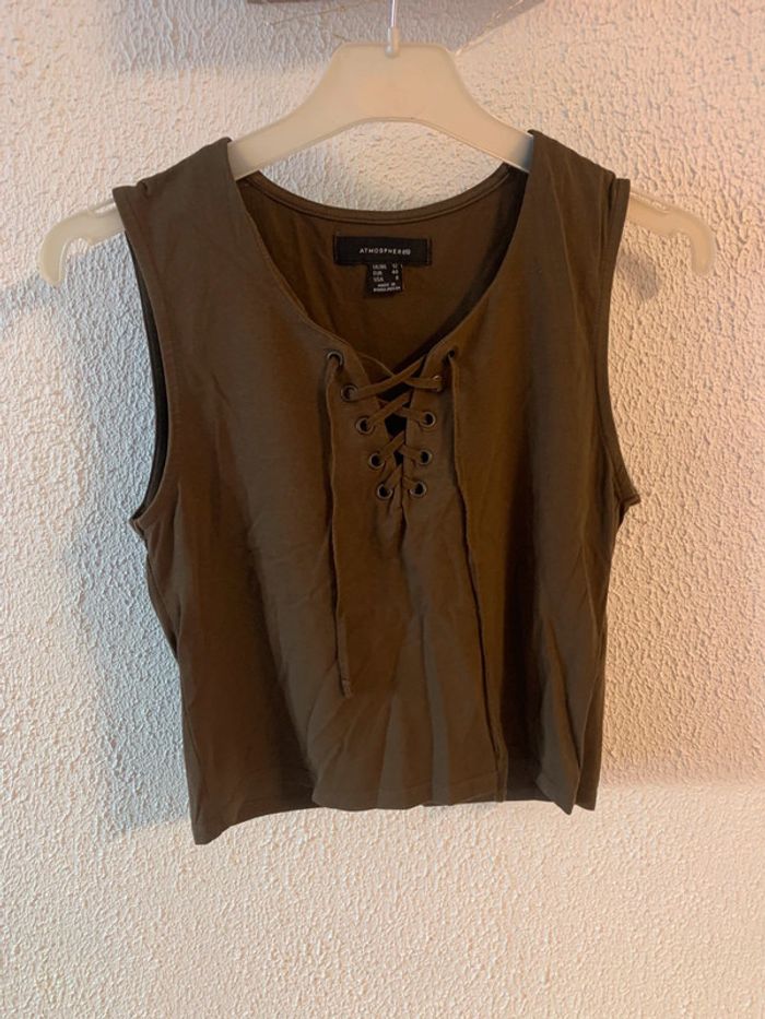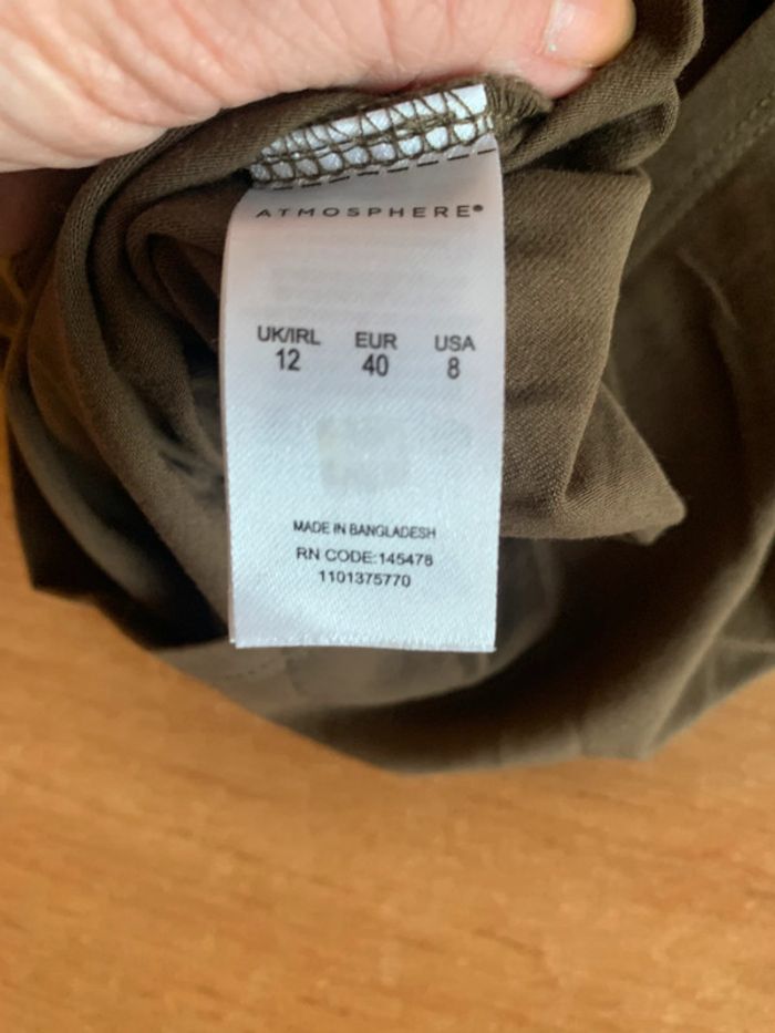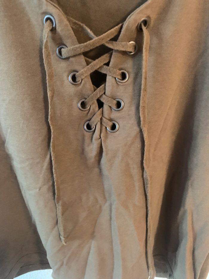 En très bon état voir mesures sur les photos car noté taille 40 Avec laçage sur le devant Couleur kaki En coton