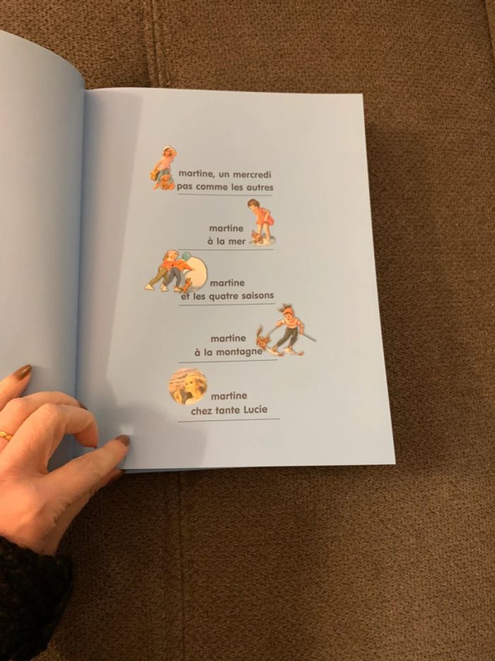 Livre grand format couverture cartonnée en très bon état 5 histoires Marine , un mercredi pss comme les autres Martine a la mer Martine et les quatre saisons Martine à la montagne Martine chez tante Lucie