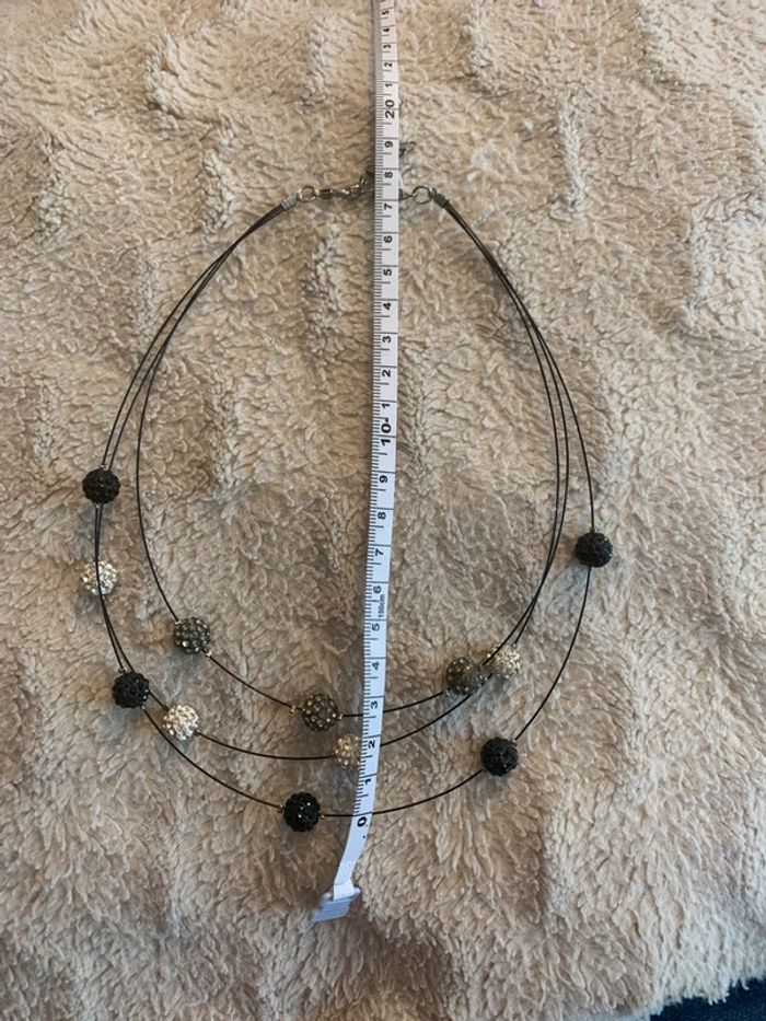 En très bon état réglable avec une chaînette Boules à strass noires grises et argenté