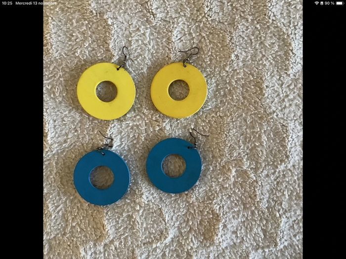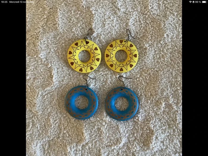 Boucles d’oreilles en bois peint ( 2 e le lot des 2 paires) - photo numéro 1