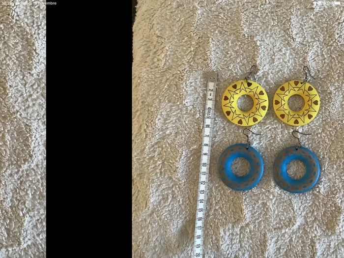 Boucles d’oreilles en bois peint ( 2 e le lot des 2 paires) - photo numéro 3