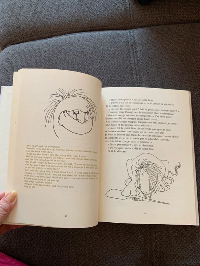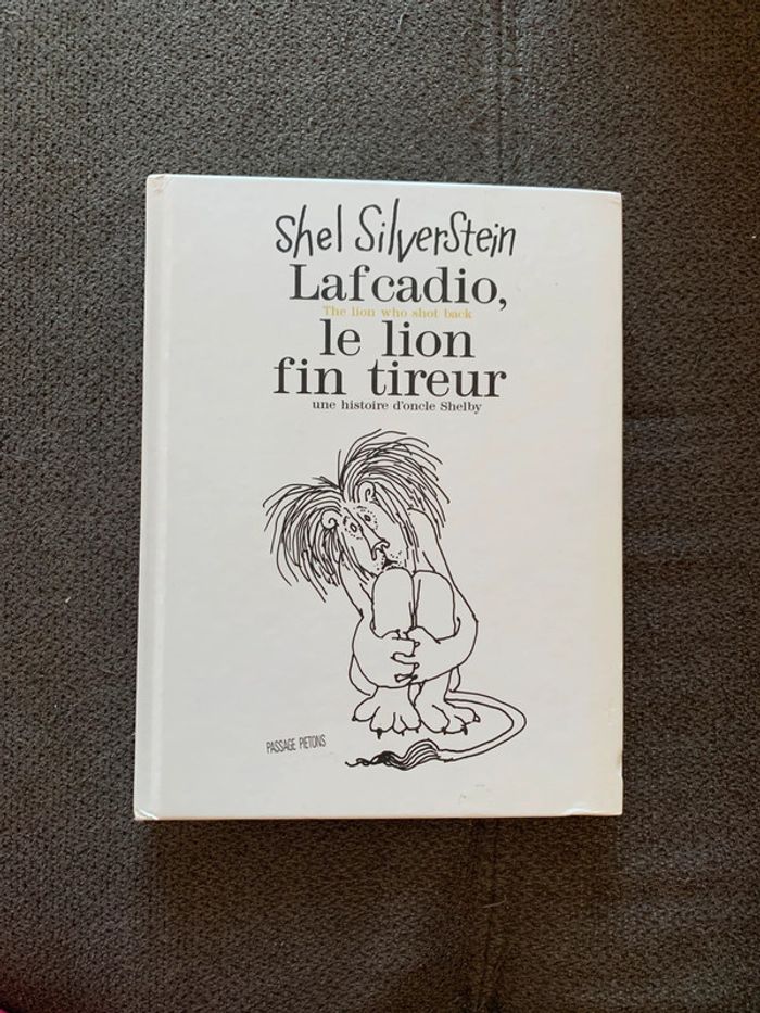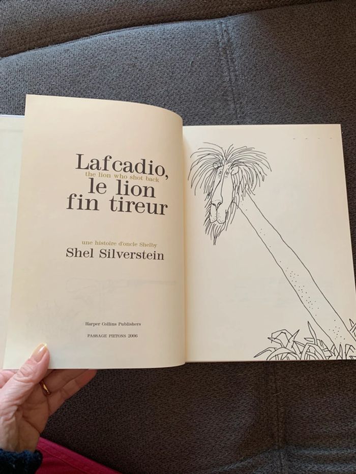 Livre moyen format couverture cartonné en très bon état avec traduction et dessins Écrit en français et anglais Lafcadio, the lion who back shel silverstein