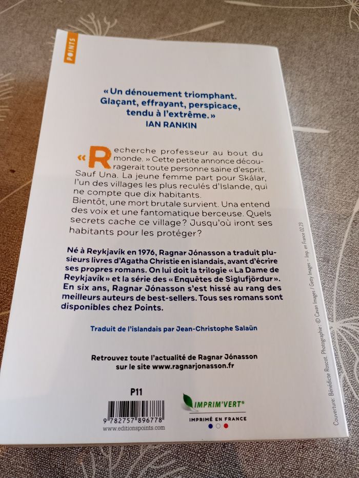 Livre "Dix âmes, pas plus" de Ragnar Jonasson. Editions Points. Très bon état.