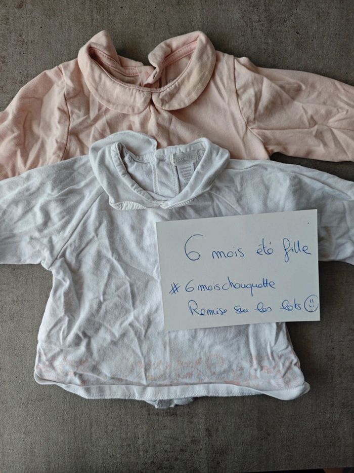 Lot de 2 t-shirts manches longues col claudine - photo numéro 1