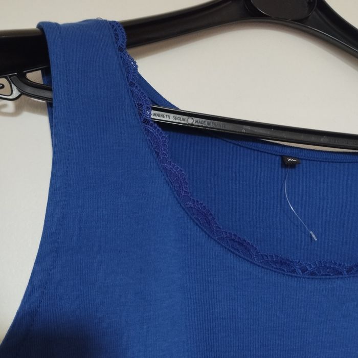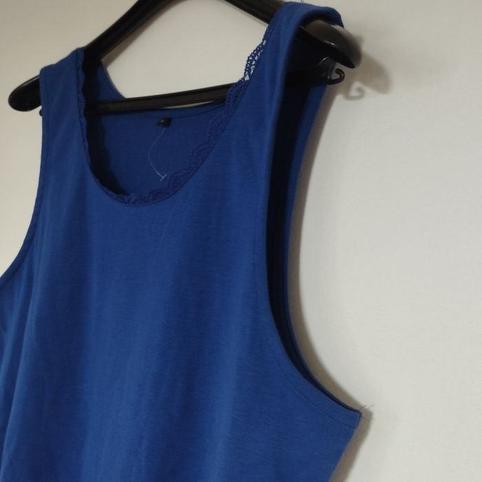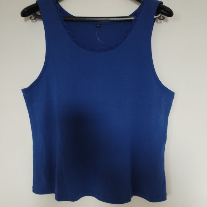 Top débardeur Neuf pour femme taille XL. Bleu pétrole. Col arrondi dentelle autour. Aisselle à Aisselle 49cm. Hauteur 57cm.