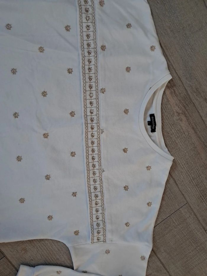 #venouk31pullfemme Sweat broderie doré Volant dur le devant