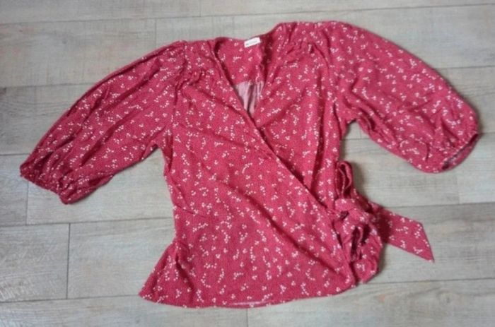 #venouk31hautmancheslongues Blouse cache cœur avec lien à noué Manches 3/4 resserré avec élastique