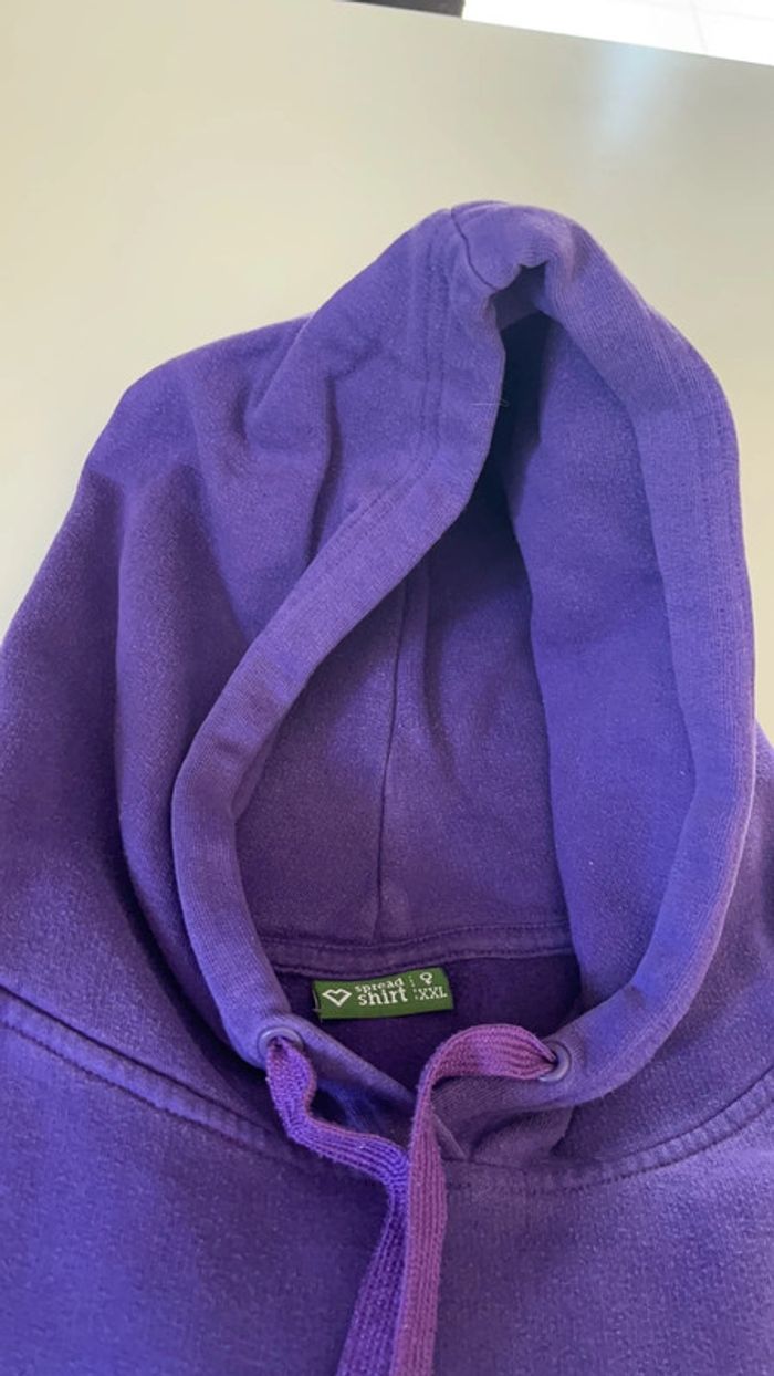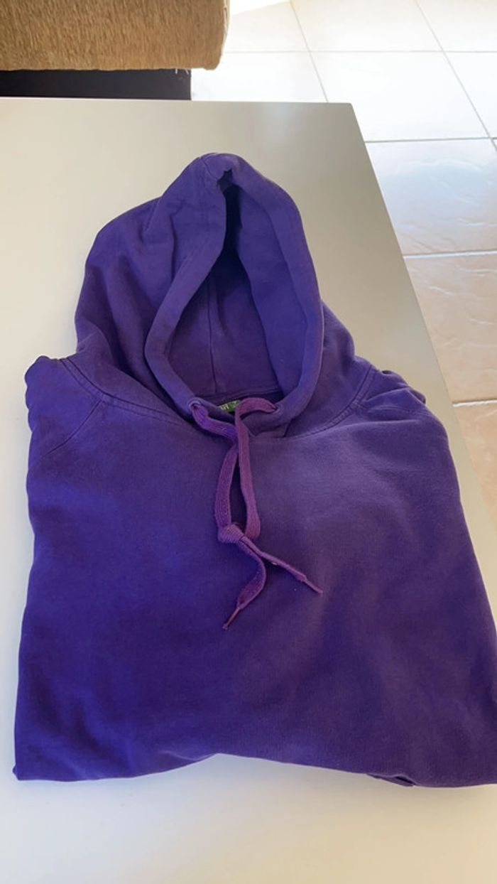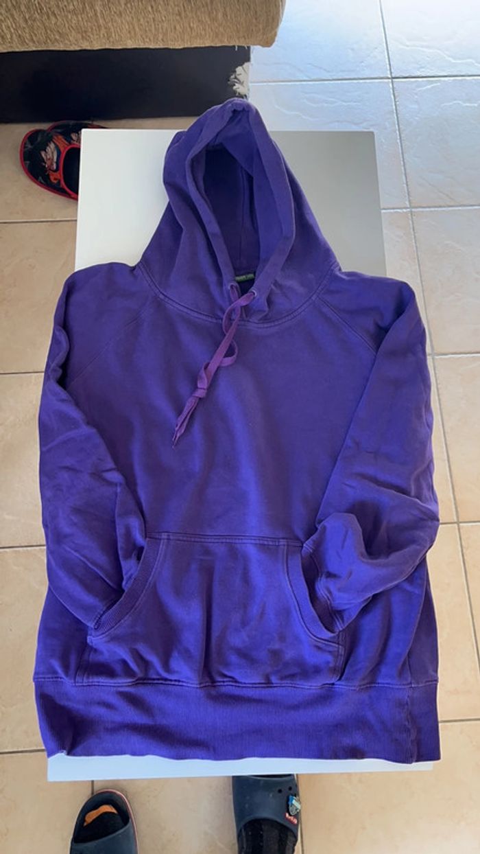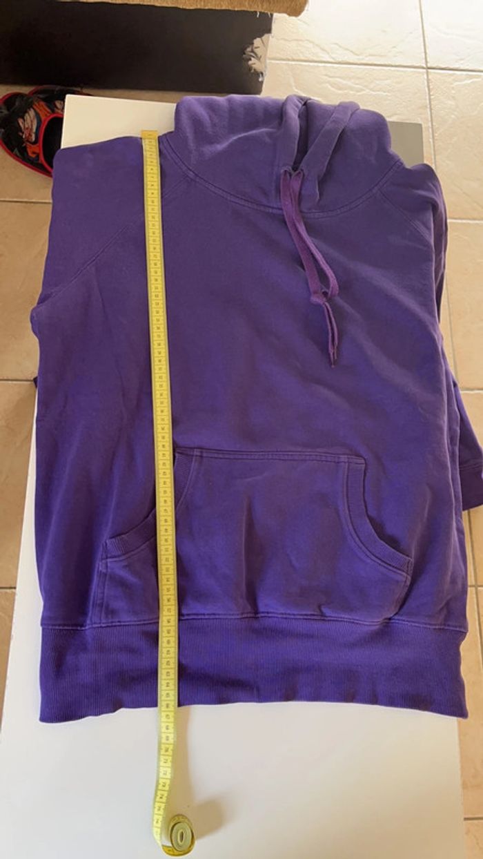 Sweat à capuche avec inscription au dos. Porté plusieurs fois, il y a quelques traces d’usure( voir photo) Taille XXL qui correspond plus à un XL.