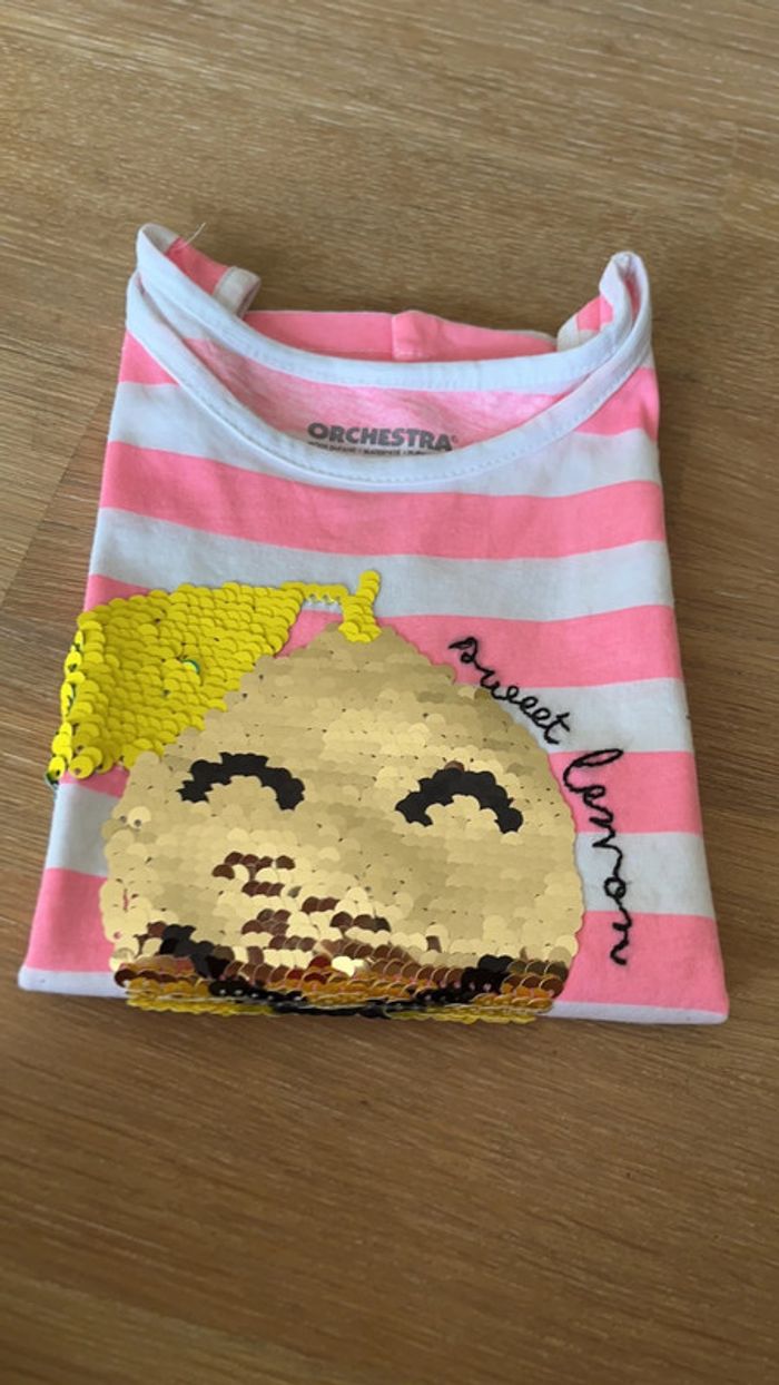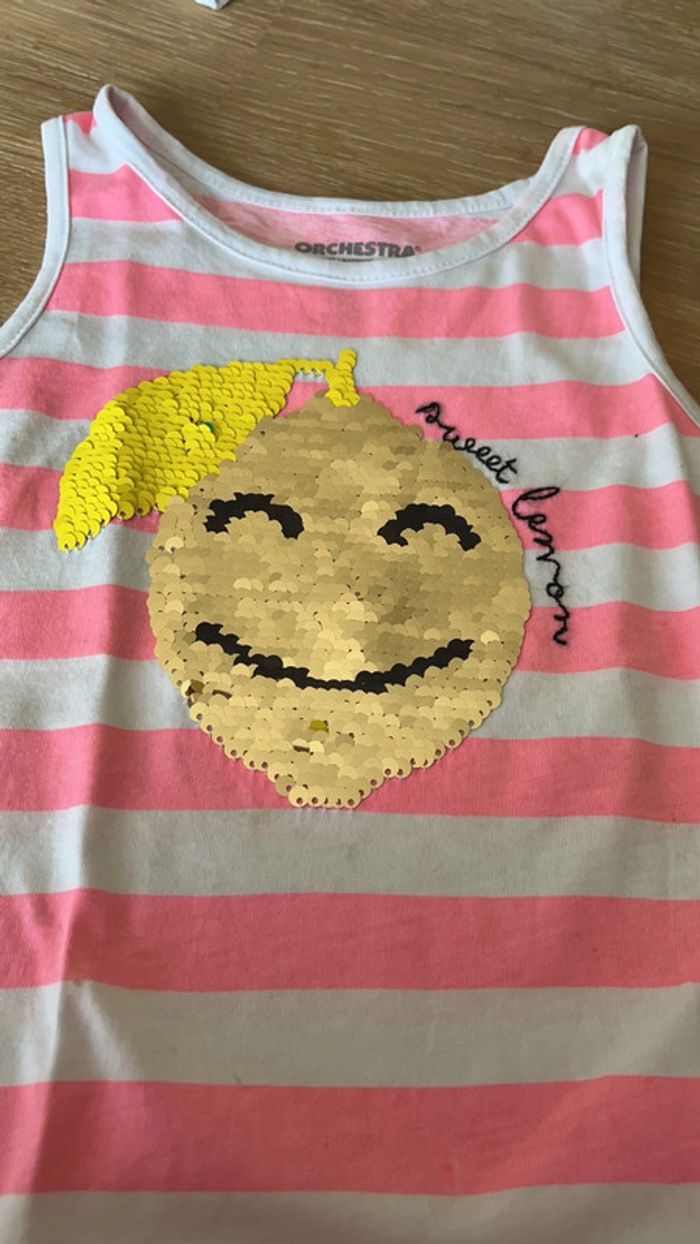 Débardeur fille Motif avec sequins magiques. Quelques tâches et col légèrement jauni. Taille 3 ans