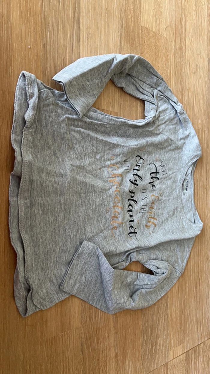 T-shirt fille à manche longue. Bon état porté plusieurs fois. Taille 3 ans marque kiabi